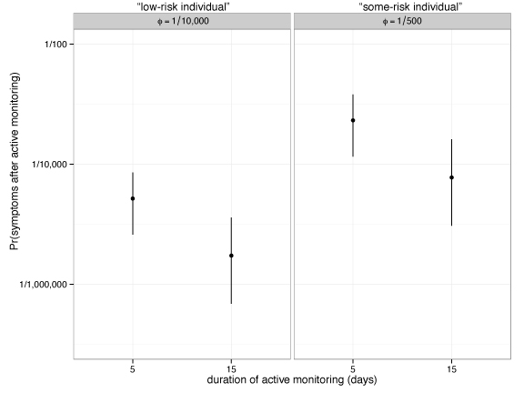 Sheri Fink published this nice piece in the New York Times yesterday on the legal issues surrounding state-imposed quarantines on travelers returning from countries with widespread Ebola transmission. In addition to the toll these policies have had on the individuals who have been put under quarantine, I took away from this article that there is still a need for better data on and communication about the risks of travelers being infected with Ebola. As it happens, this is the topic of my talk today at the Epidemics5 conference.